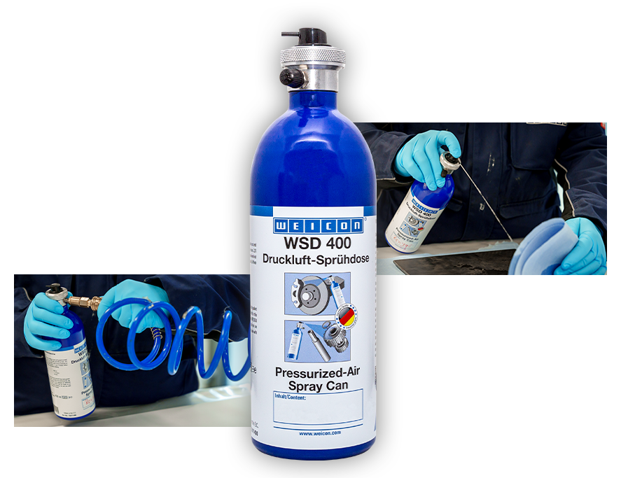 Pulverizador de aire comprimido recargable, idóneo para procesar la mayoría de los Líquidos Técnicos WEICON. Funciona de manera más ecológica con aire comprimido, y está fabricado en aluminio (volumen del formato: 600 ml, carga máxima de producto: 400 ml, presión de trabajo entre 5–10 bar). Opcional: kit de pulverización y adaptador para una aplicación precisa en forma de niebla, chorro o dosificación puntual.