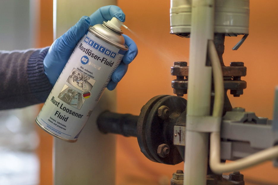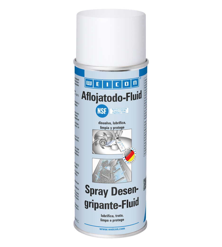 El Aflojatodo-Fluid es fisiológicamente inocuo y dispone de un certificado NSF para el sector alimenticio. Se puede emplear por tanto en la industria alimentaria y de bebidas, así como en la industria farmacéutica y cosmética. El Aflojatodo-Fluid suelta los racores, los pernos, las palancas, las articulaciones y las bisagras oxidados y atorados. Gracias a sus excelentes propiedades de penetración, el Aflojatodo-Fluid incluso en los intersticios más pequeños. Asegura el funcionamiento de piezas mecánicas y contactos eléctricos. El producto protege sosteniblemente de corrosión y óxido. Limpia y cuida superficies metálicas, piezas mecánicas e instalaciones eléctricas. Gracias a su formulación especial y al certificado NSF, el Aflojatodo-Fluid puede mejorar la seguridad laboral y la protección sanitaria en el puesto de trabajo.