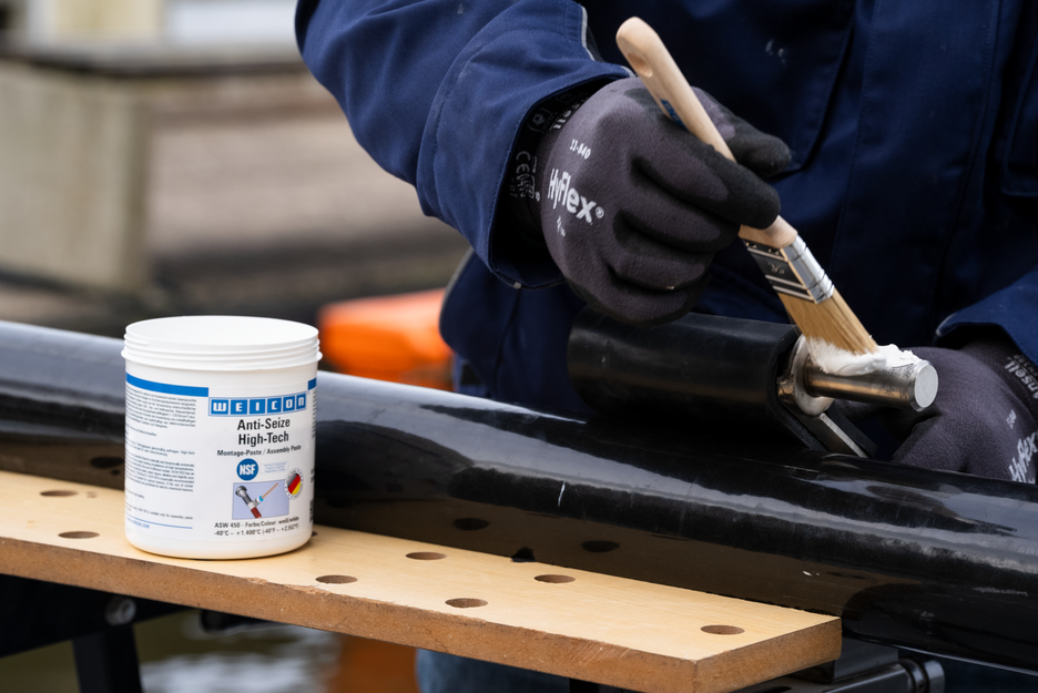 WEICON Anti Seize „High-Tech“ es resistente a altas temperaturas, ofrece un extraordinario efecto separador, es exento de metal, es de comportamiento neutro a materiales y tiene certificado NSF. Anti-Seize High-Tech es especialmente adecuado si pastas con contenido metálico pueden causar reacciones electrolíticas, si por razones de salud no pueden o no deben utilizarse productos con contenido de níquel y si por razones ópticas no pueden o no deben utilizarse productos oscuros con contenido metálico.