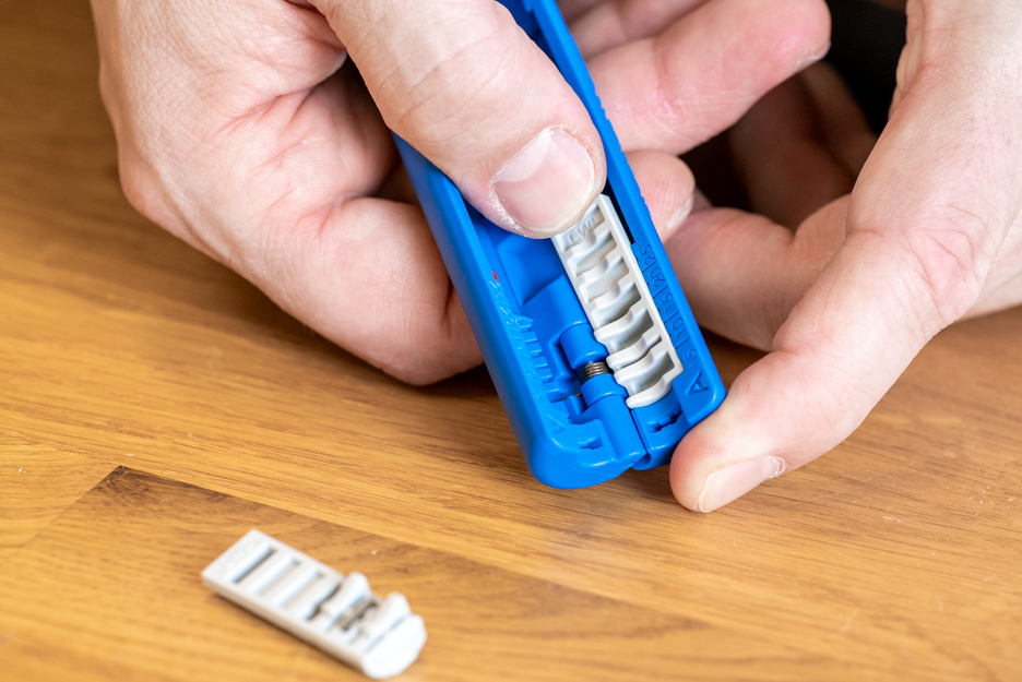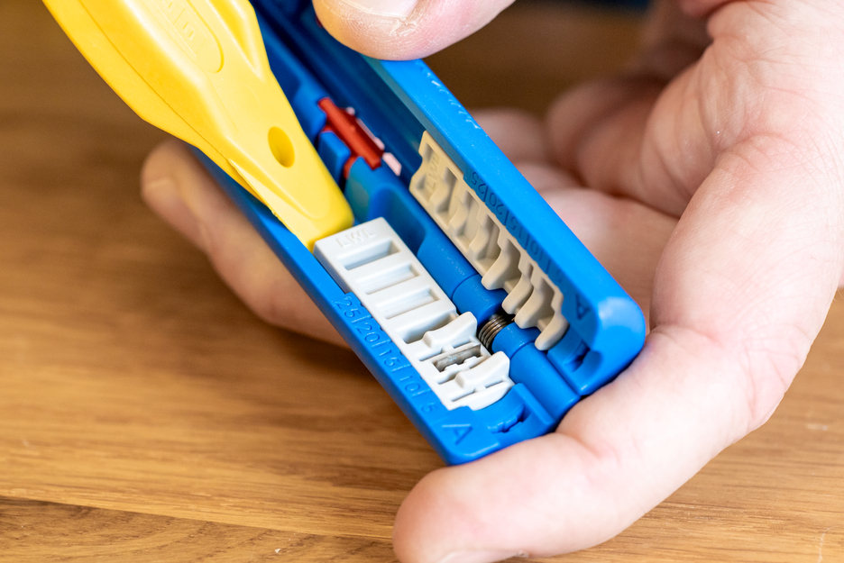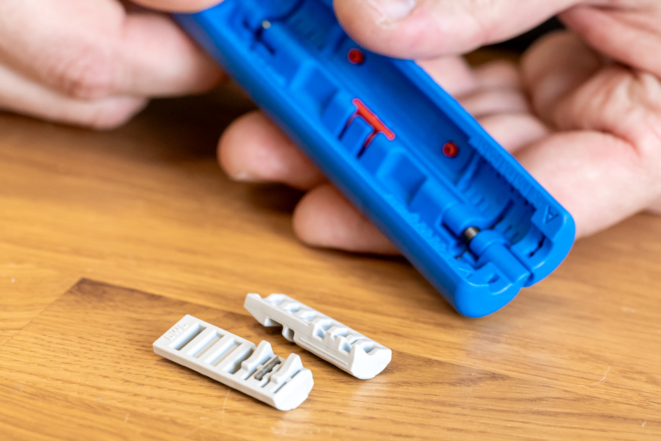 La Herramienta Pelacables para Tubos de Fibra Óptica nº 2 ha sido especialmente diseñada para acceder rápidamente a las fibras ópticas en tubos sueltos en tubos intermedios de 1,2 mm a 4 mm de diámetro. Es adecuado para un cable con un grosor de pared de 0,15 mm a 0,6 mm. Con la cuchilla del módulo y un punto de inserción especial, el cable intermedio puede introducirse cómodamente a través de la práctica herramienta. Esto permite al usuario acceder a la fibra óptica de forma rápida y segura. La cuchilla de la herramienta de pelado corta fácilmente el tubo de protección (por ejemplo, de PE) y el usuario puede simplemente doblar el tubo sin dañar la sensible fibra de vidrio. En caso necesario, la punta de inserción y la cuchilla pueden sustituirse o renovarse.