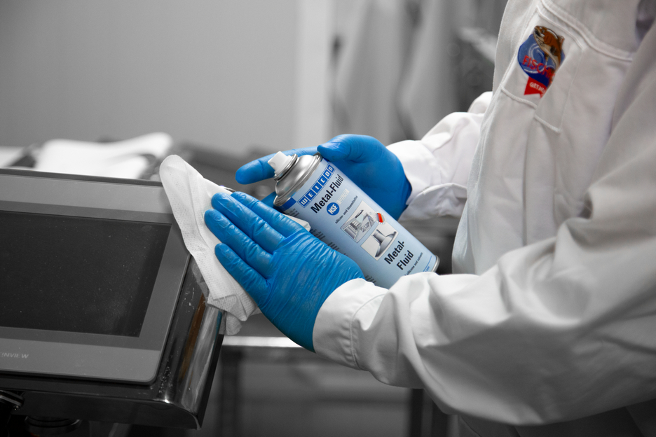 WEICON Metal-Fluid es un agente para proteger y limpiar superficies mates y pulidas en interiores y tiene el certificado NSF. Metal-Fluid protege, conserva y limpia tanto superficies metálicas como también cerámica, madera, vidrio y plásticos. Las inscripciones grabadas al ácido y las impresas así como las superficies de plástico y las juntas de goma no se despegan con Metal-Fluid.