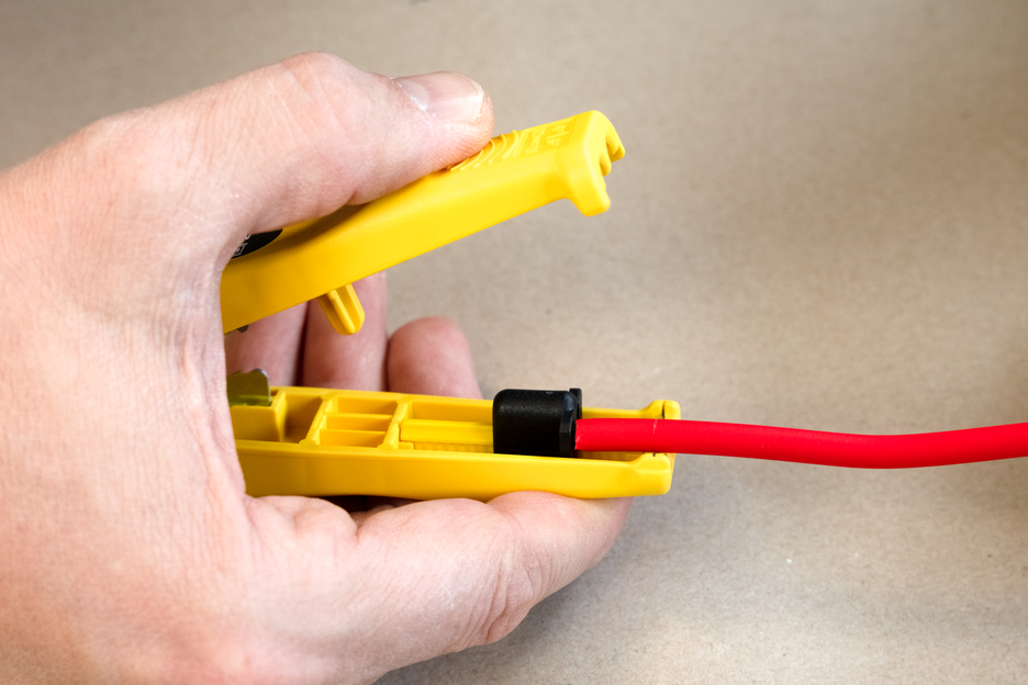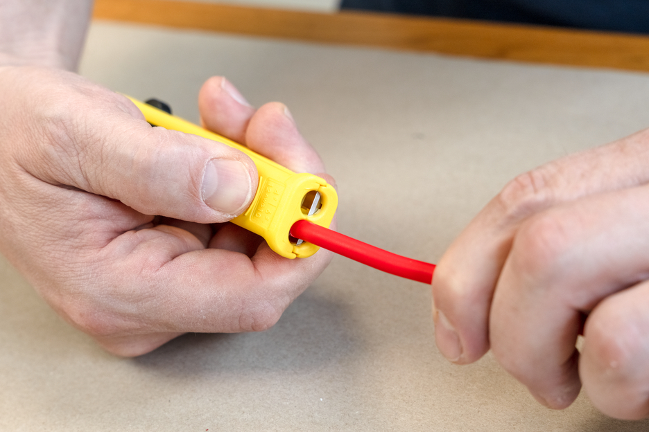 Con el pelacables Mini-Solar 4/6 mm² se pueden pelar todos los cables solares habituales de forma rápida y sencilla. No es necesario ajustar manualmente la profundidad de corte. El tope de longitud integrado (de 6 a 28 mm) es adecuado para pelar cables solares de 4,0 ó 6,0 mm². Además, la herramienta reforzada con fibra de vidrio dispone de un cortador lateral de fácil acceso para cables de hasta 10 mm². Al utilizar el pelacables, se crea un patrón de corte preciso durante el pelado. Además, la Mini-Solar 4/6 mm² se puede bloquear para ahorrar espacio.