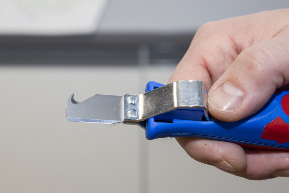 con mango 2C que incluye cuchilla de gancho y tapa protectora, rango de trabajo 4 - 28 mm Ø