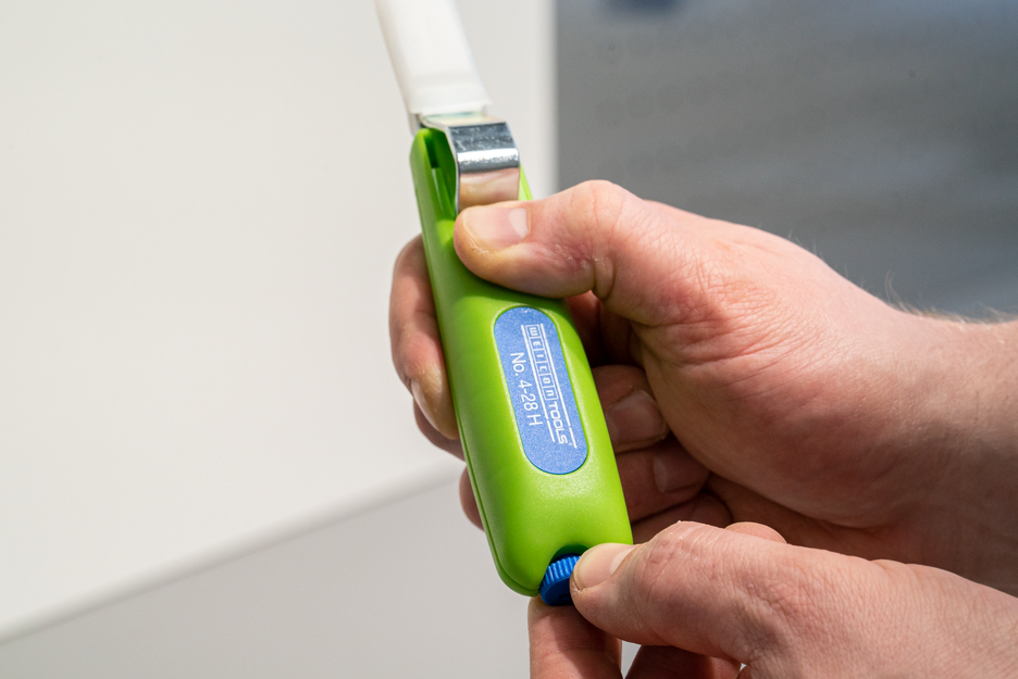 Gran diámetro del mango para una háptica óptima Tornillo de ajuste infinitamente variable y fácil de accionar Pelado preciso, rápido y seguro