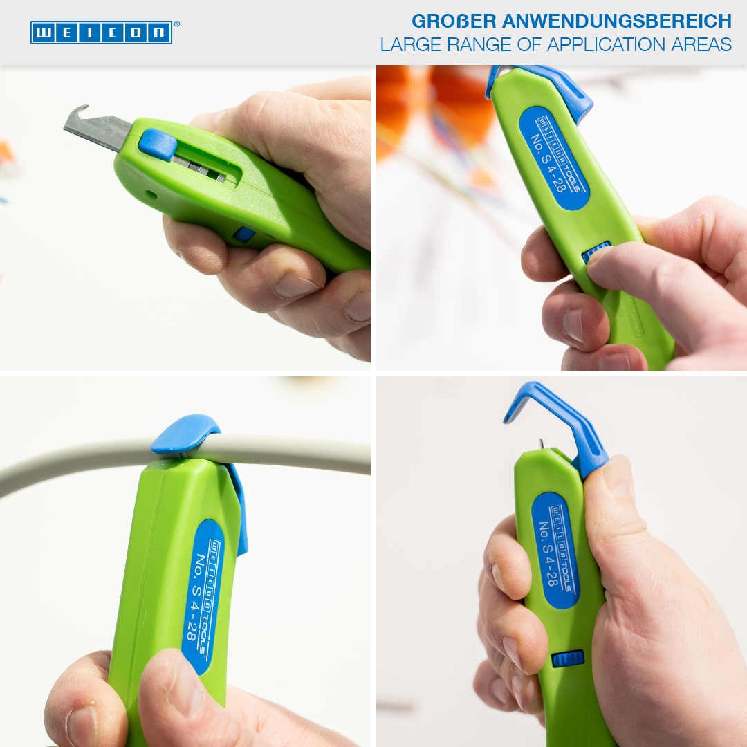 con cuchilla de gancho retráctil, rango de trabajo 4 - 28 mm Ø