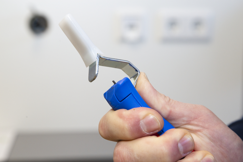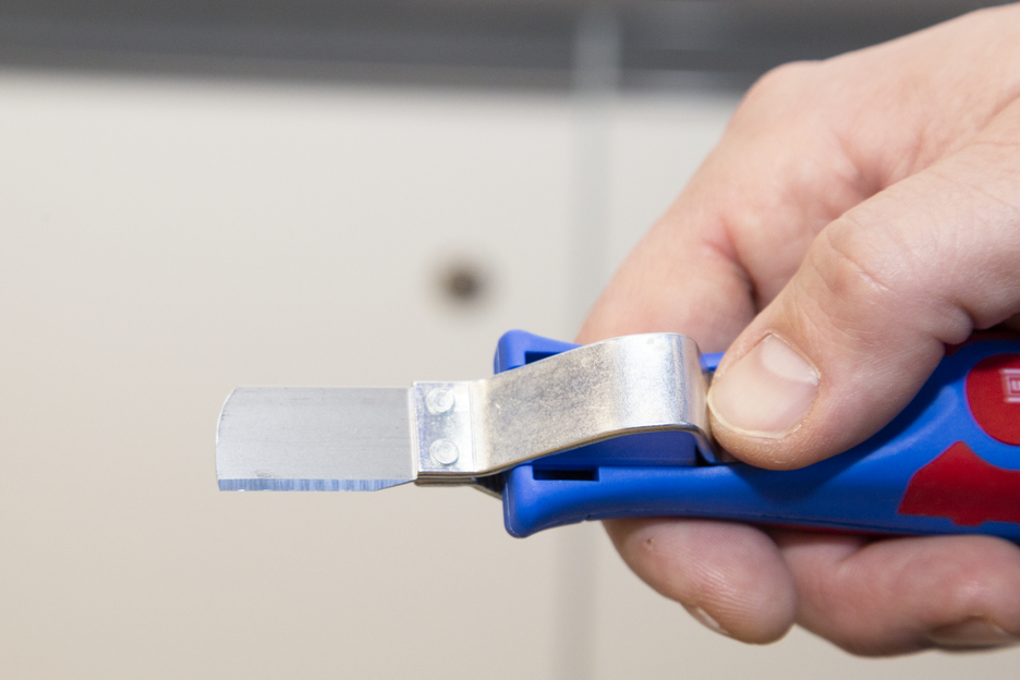 Gran diámetro del mango para una háptica óptima Tornillo de ajuste infinitamente variable y fácil de accionar Pelado preciso, rápido y seguro Cambio rápido de la cuchilla interior con cierre de bayoneta