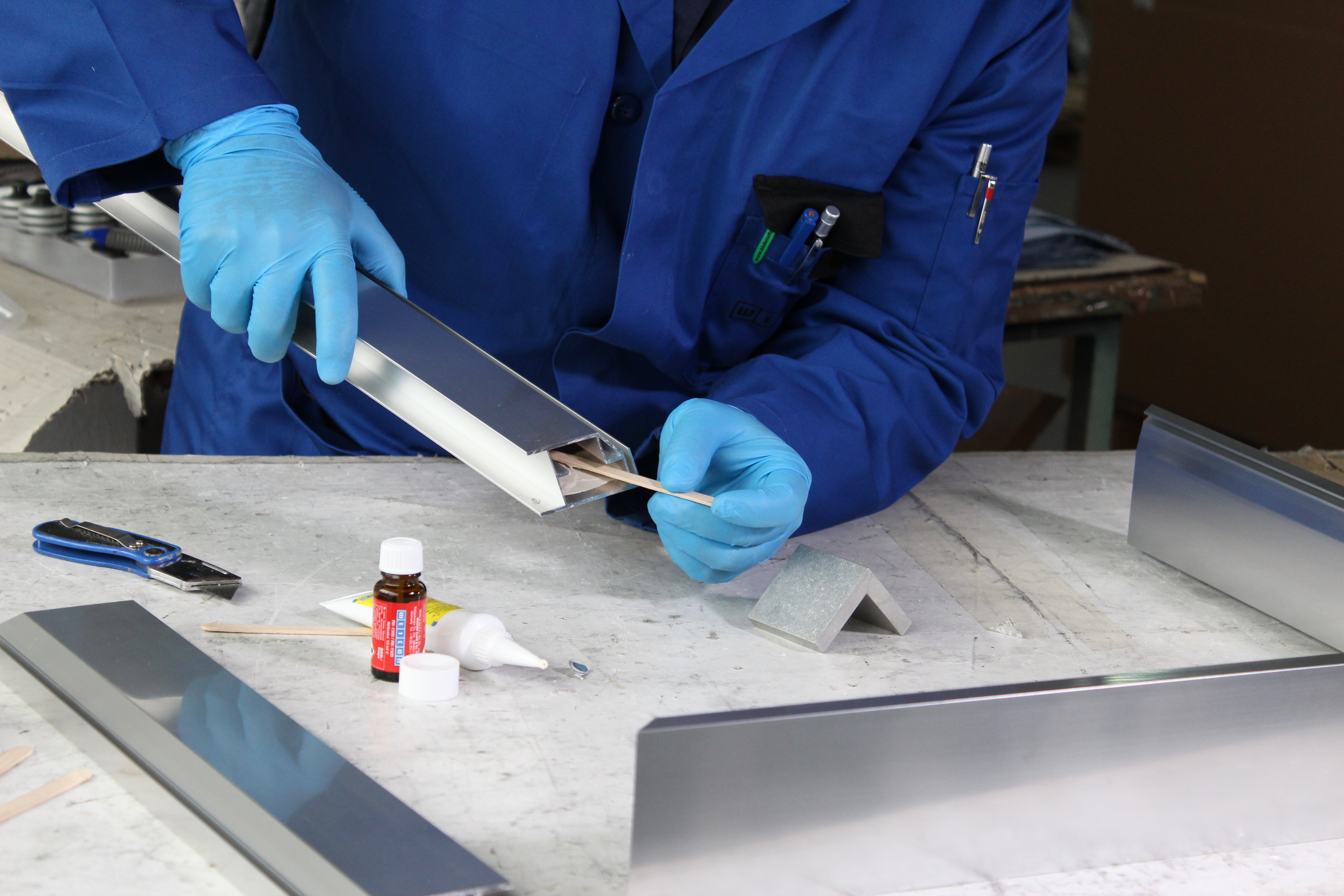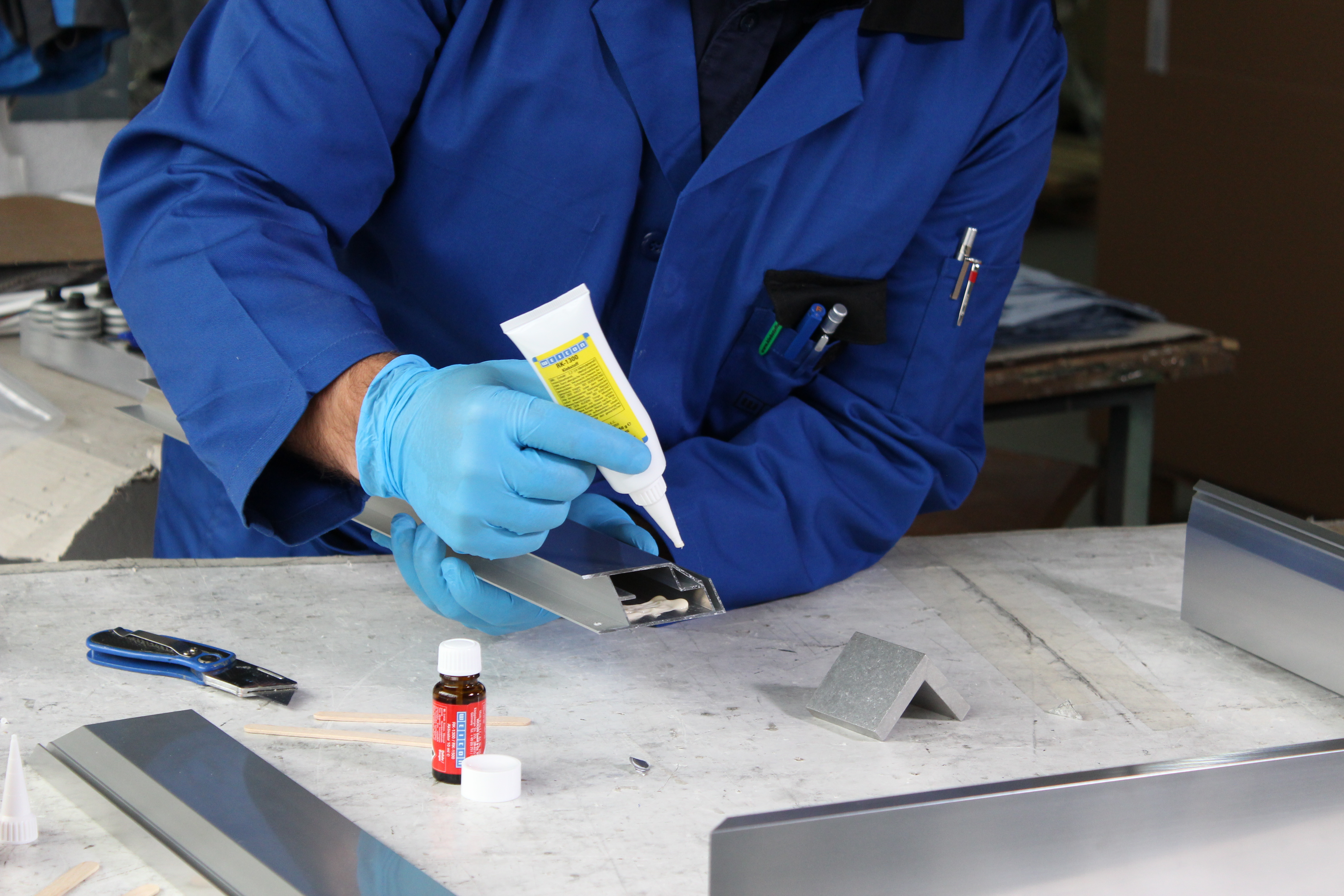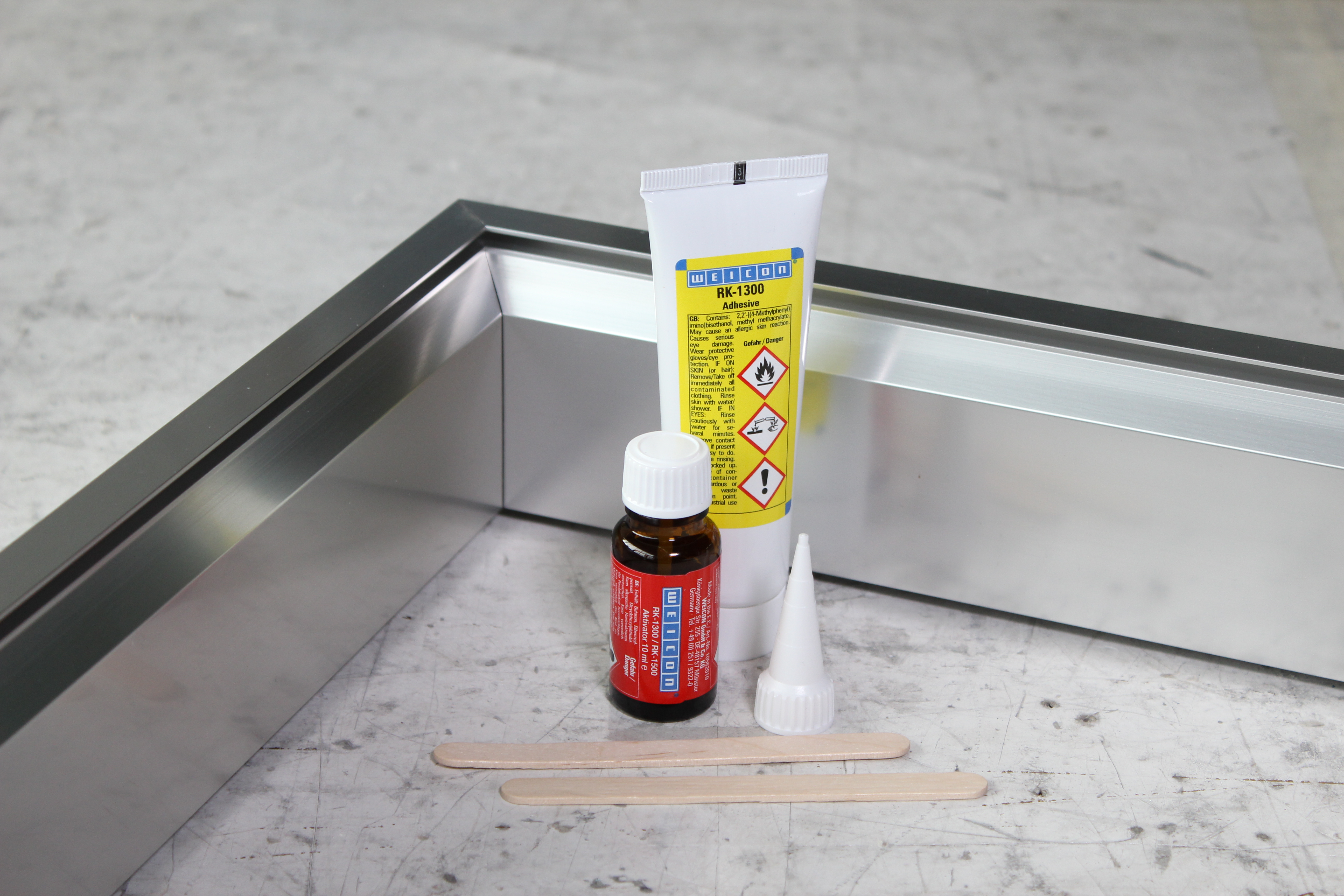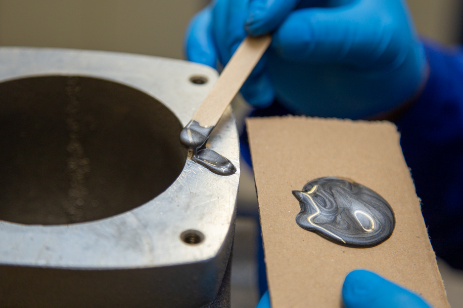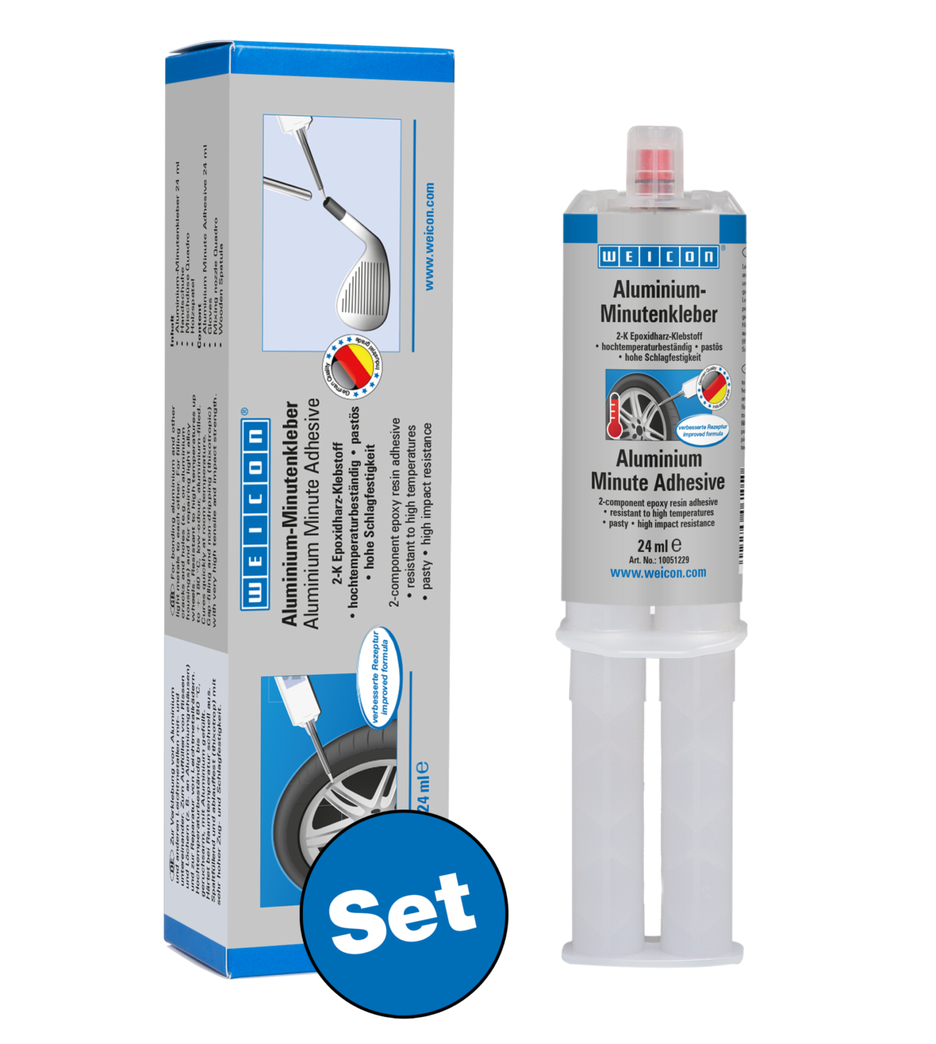Adhesivo para unir aluminio y otros metales ligeros entre sí. WEICON Resina Epoxi Aluminio se puede utilizar para rellenar grietas y agujeros, por ejemplo, en carcasas de aluminio, y para reparar llantas de aleación ligera. La Resina Epoxi Aluminio es un adhesivo epoxi bicomponente, de bajo olor y con carga de aluminio. Resiste altas temperaturas de hasta +180 °C y cura rápidamente a temperatura ambiente. Tras el curado, el adhesivo puede mecanizarse (limado, taladrado, fresado). La Resina Epoxi Aluminio rellena huecos, no gotea (tixotrópico) y ofrece una resistencia a la tracción y al impacto muy elevada. Para lograr una adhesión óptima, las superficies de adhesión deben estar secas y libres de grasa o suciedad. Además, raspar o lijar las superficies antes de limpiarlas mejora la adherencia.