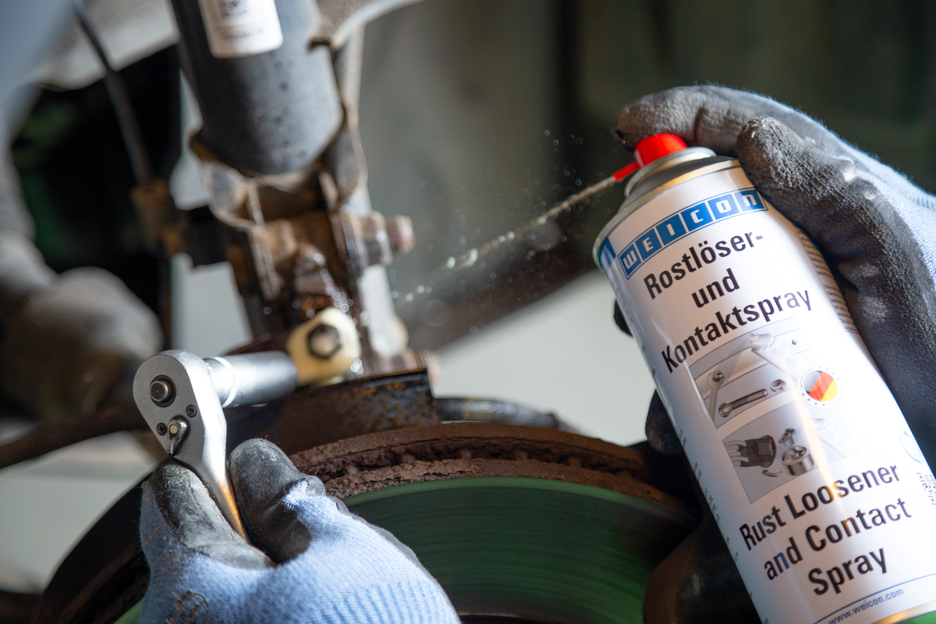 El Spray Aflojatodo WEICON es imprescindible para la reparación, conservación y mantenimiento, debido a su efecto séxtuple. Gracias a sus excelentes propiedades de penetración, el Spray Aflojatodo penetra incluso en los intersticios más pequeños. Con la válvula rociadora de tres vías es posible trabajar en cualquiera posición (incluso por encima de la cabeza). El Spray Aflojatodo WEICON afloja componentes, uniones atornilladas, pernos, articulaciones y bisagras bloqueados por el óxido o duros de mover, repele al agua de sistemas de encendido, asegura el funcionamiento de piezas mecánicas y contactos, por ejemplo, en las tapas de distribuidor y en las bujías de encendido, protege duraderamente contra la corrosión y el óxido, lubrica duraderamente las superficies de deslizamiento, conserva y limpia superficies metálicas, piezas mecánicas e instalaciones