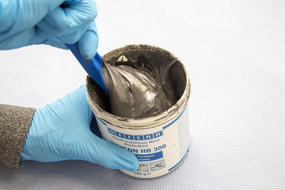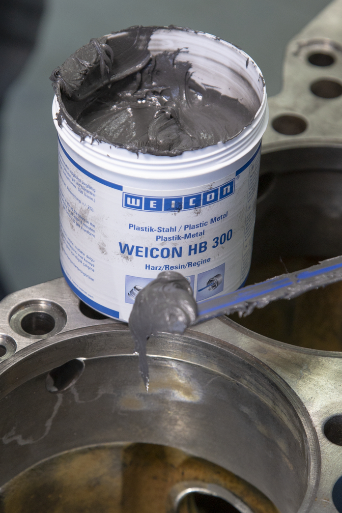 WEICON HB 300 es una pasta con carga de acero resistente a altas temperaturas de hasta +200 °C (392 °F) (durante corto tiempo hasta +280 °C/536 °F) y se aplica mezclada en una relación 1:1. El Sistema de Resina Epoxi es apto también para aplicarlo sobre superficies verticales y puede utilizarse para reparaciones y uniones de piezas de fundición y de metal, para rellenar cavidades, para reparar daños en tanques, carrocerías y componentes de máquinas y para sellar bombas y tuberías. El producto puede aplicarse en la construcción de máquinas, instalaciones y aparatos así como en una gran cantidad de otros campos industriales.