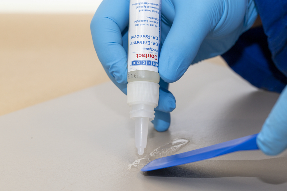 WEICON Removedor de Cianocrilato disuelve y elimina los adhesivos de cianoacrilato. Se utiliza para la limpieza de piezas de metal, herramientas y muchas superficies diferentes que han entrado en contacto con adhesivos de cianocrilato. Después de unos minutos, el adhesivo disuelto se puede eliminar limpiando con un paño sin pelusas. En caso de suciedad persistente, el proceso debe repetirse. Algunos plásticos, revestimientos y superficies sensibles pueden verse afectados por el Removedor de Cianocrilato. La compatibilidad con el material debe ser comprobada en una parte oculta de la pieza. A diferencia de los disolventes convencionales, WEICON Removedor de Cianocrilato no es muy inflamable y tiene un alto punto de inflamación de >120 °C.